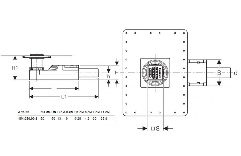 Душевой трап Geberit CleanLine 154.050.00.1 высота 90мм