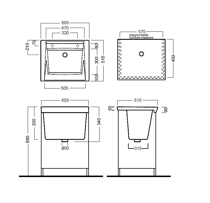Тумба под хозяйственную раковину Hatria Complementi 60x51x88 Белая