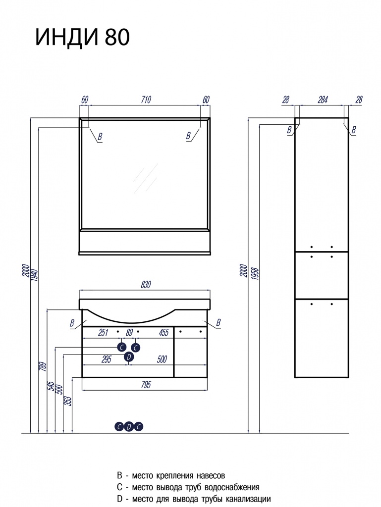 Тумба под раковину Акватон Инди 80 подвесная 1A188401ND010 Белый глянец