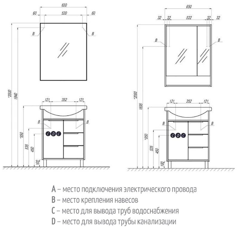 Тумба под раковину Акватон Рико 65 1A213301RIB90 Белый Ясень фабрик
