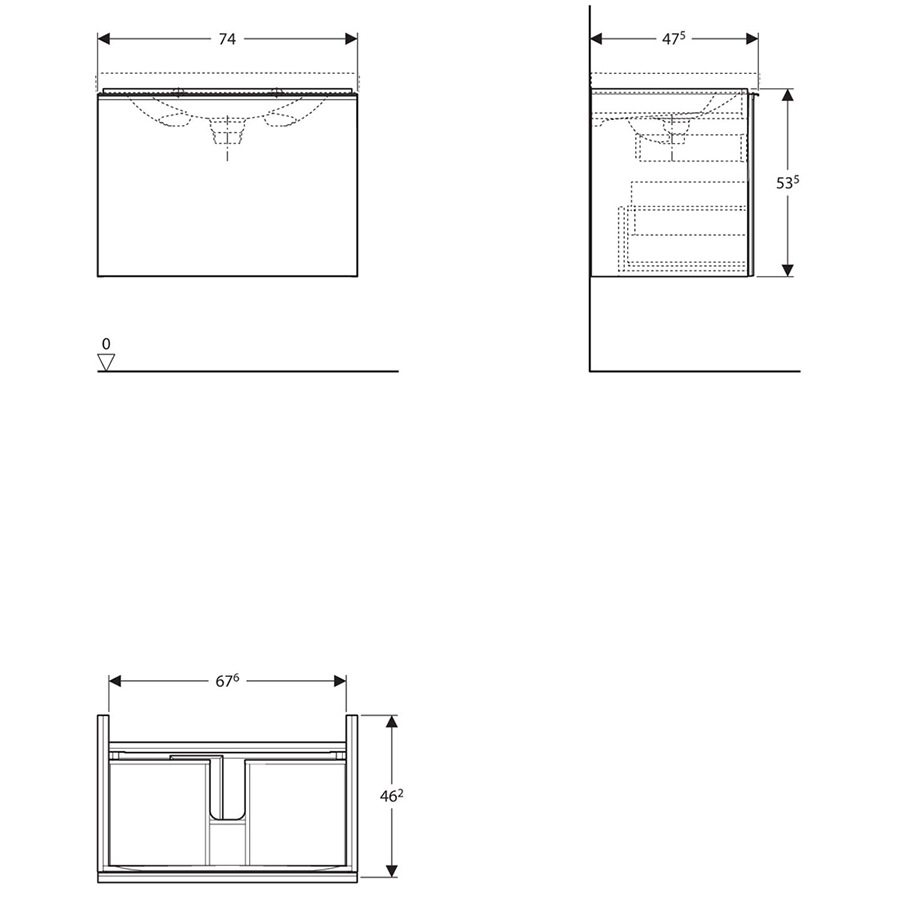 Тумба под раковину Geberit (Keramag) Acanto 74 подвесная Белое стекло