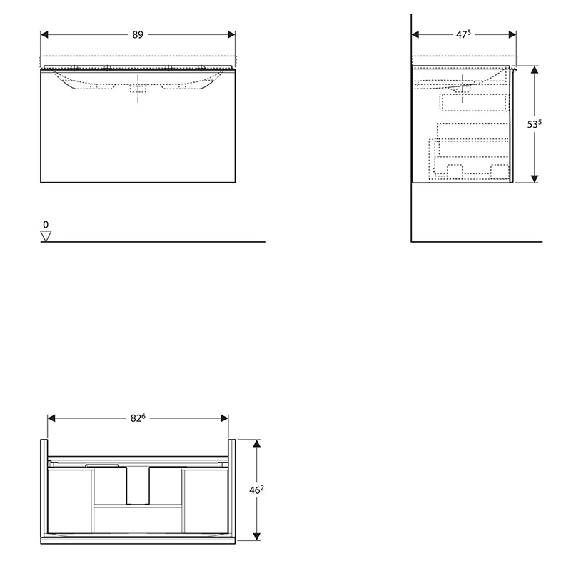 Тумба под раковину Geberit (Keramag) Acanto 90 подвесная Белое стекло
