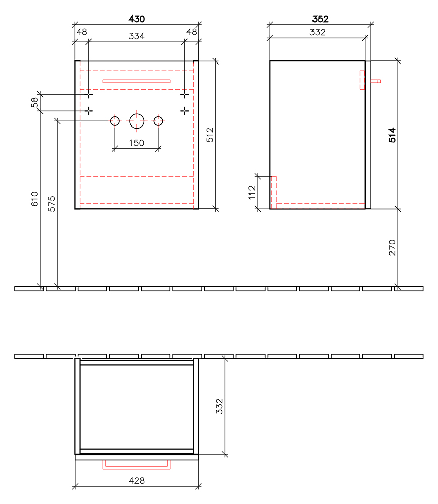 Тумба под раковину Villeroy&Boch Avento 45 подвесная Белая