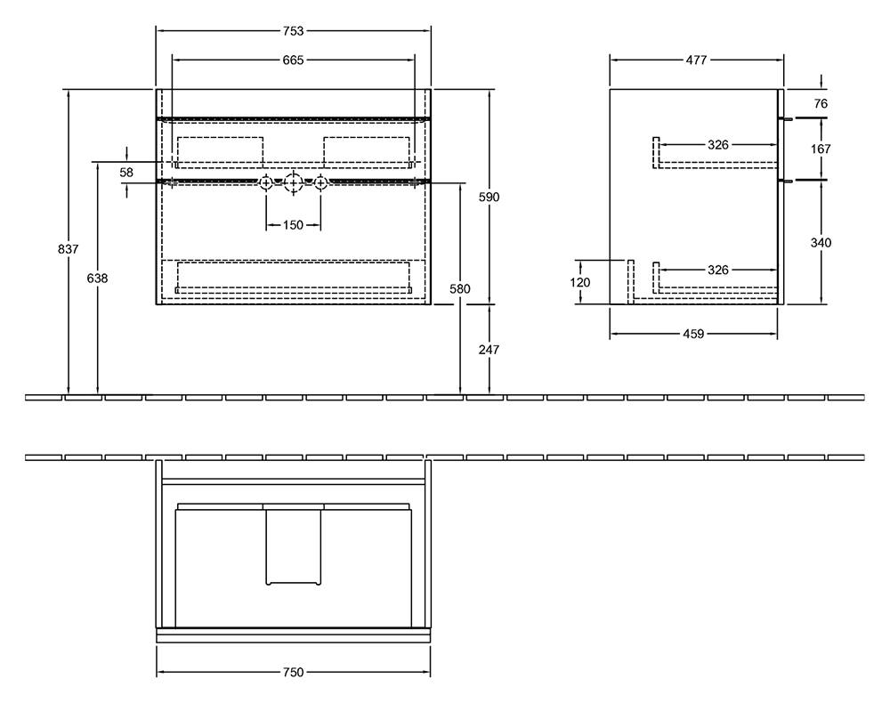 Тумба под раковину Villeroy&Boch Venticello 80 подвесная Белая Хром