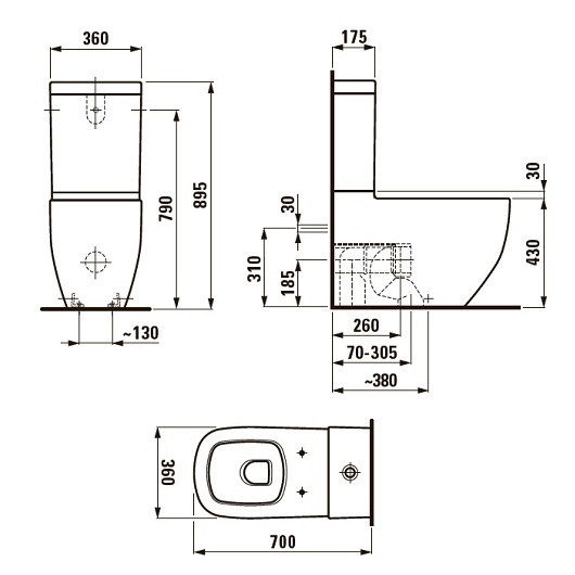 Унитазы типа компакт это реальная классика в мире сантехники. Понятный дизайн, легкость размещение, приемлемая цена и впечатляющий срок службы - вот основные причины успеха изделий этого формата. Чаша унитаза-компакта Laufen Palomba 8.2480.6 без бачка и сиденья считается известным образцом компактных агрегатов и благодаря своим характеристикам может отлично выполнять все необходимые задачи. Красивый дизайн бренда Laufen делает его отличным акцентом в интерьере ванной комнаты, а идеальные параметры (длина 70 см, ширина 36 см., глубина см. и высота 89.5 см.) дают возможность установить изделие в туалетах с абсолютно любой площадью. На все унитазы серии Palomba прилагается гарантия 5 лет - вы можете не бояться, выбранный товар прослужит очень долго, а процесс эксплуатации не принесет непредвиденных неприятностей. Современный материал - фарфор очень популярен среди производителей, славится прочностью и иммунитетом к появлению пятен. Это изделие изготовлено в Швейцарии - колыбели элитной и новой сантехники. Подвод воды снизу, овальная форма и горизонтальный, вертикальный выпуск делают это изделие оптимальным решением, которое удовлетворит все потребности пользователей на высшем уровне.