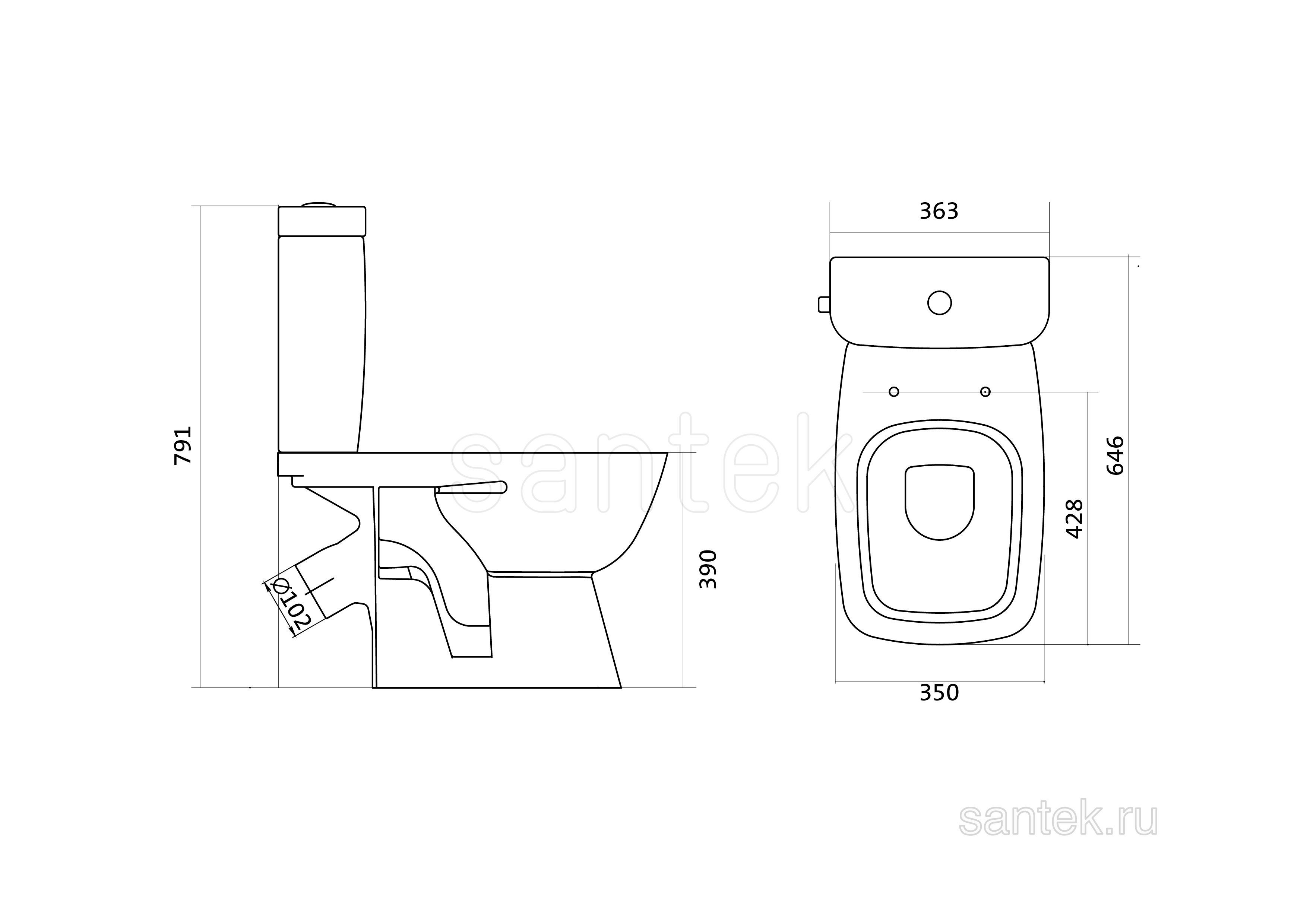 Унитаз-компакт Santek Нео Лайт с диагональным выпуском 1WH302409
