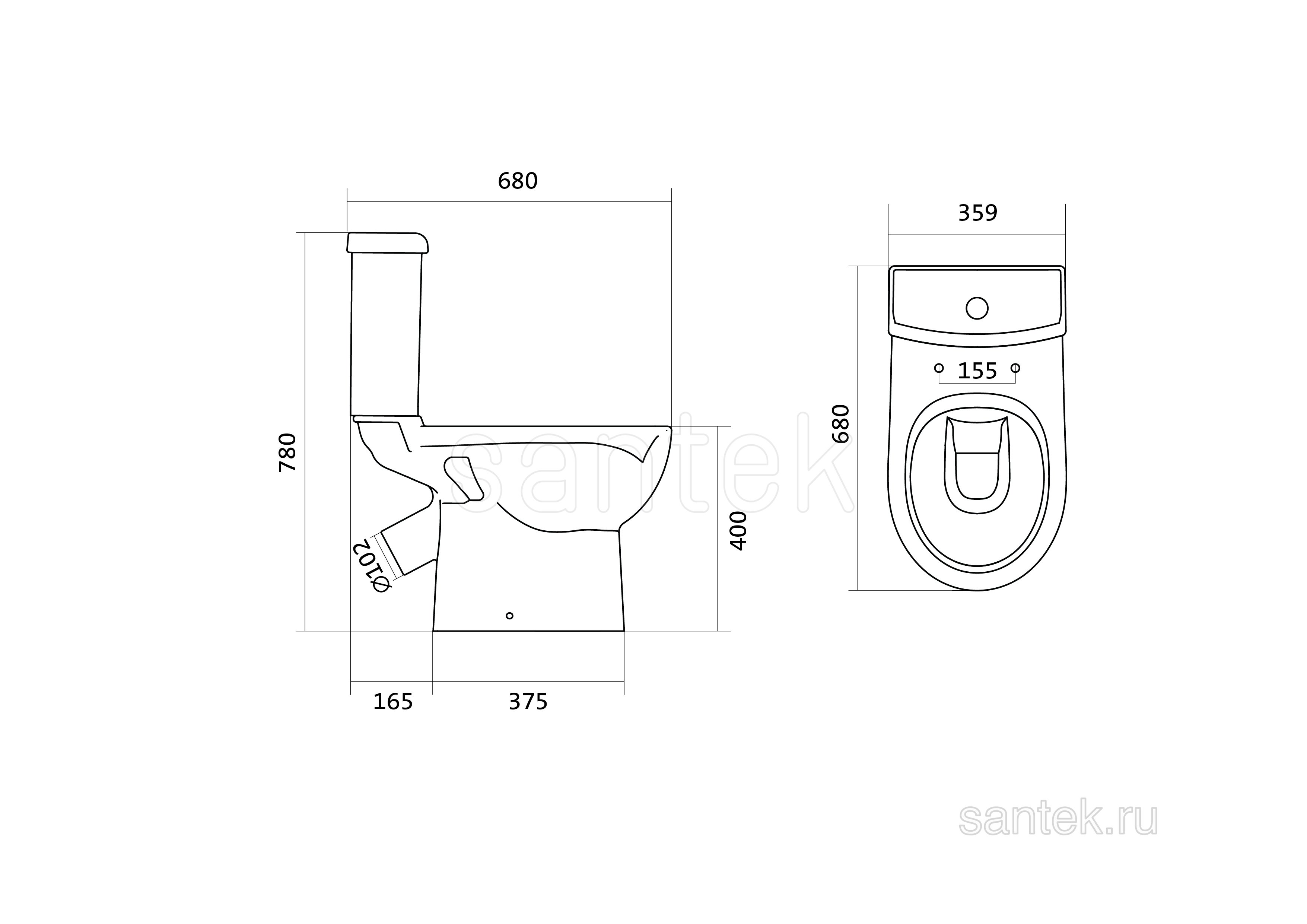 Унитаз-компакт Santek Юнион с диагональным выпуском 1WH302420