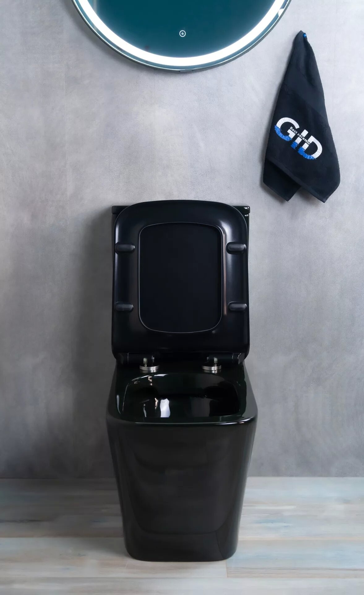 Унитаз напольный безободковый GID Tr2170BL с сиденьем микролифт, черный глянцевый