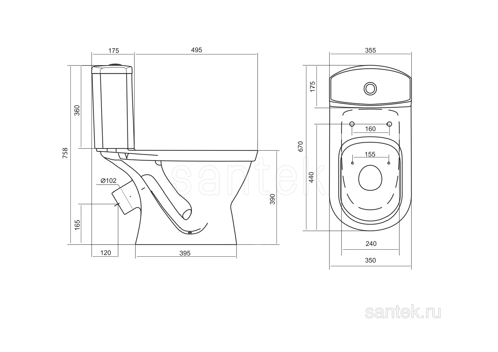 Унитаз-компакт Santek Алькор с диагональным выпуском, антивсплеск 1WH302196