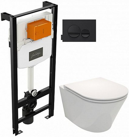 Комплект унитаз с инсталляцией Jacob Delafon Rodin E21748RU-00 кнопка чёрная