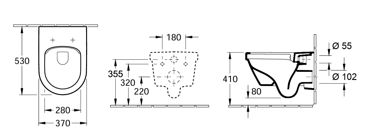 1.Подвесной унитаз Villeroy & Boch Targa 4646R001) с беободковой системой смыва 530 x 370 x 330 из фарфора с сиденьем 98M9C101 с функцией автоматического опускания (SoftClosing), со снимаемым сиденьем (QuickRelease) — полный аналог 5684HR01