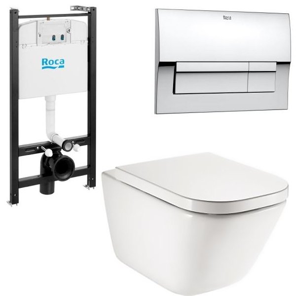 Комплект унитаза с инсталляцией Roca The Gap 893104100 с сиденьем и кнопкой смыва Хром