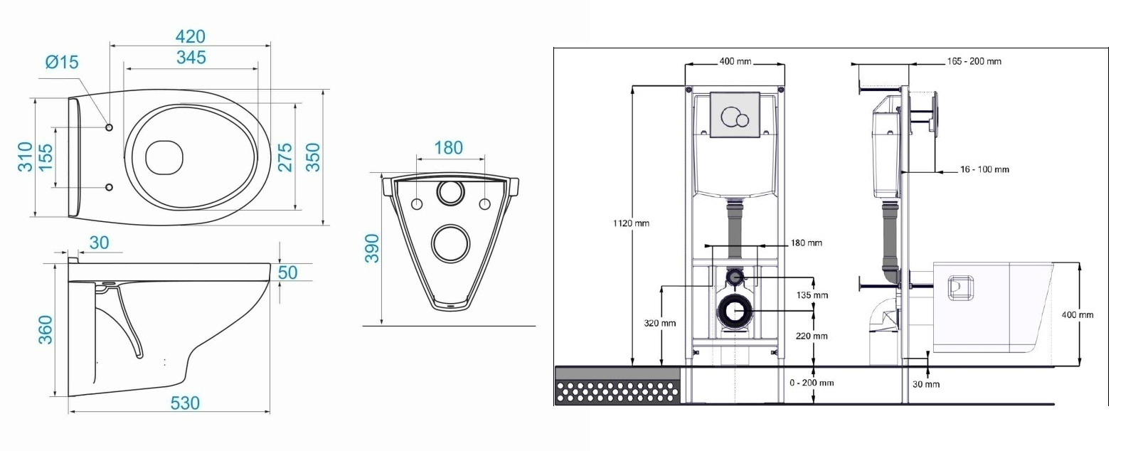 ПЭК Santek Бореаль Пэк 1WH302464 подвесная чаша + инсталляция +сиденье+панель бел. цвета