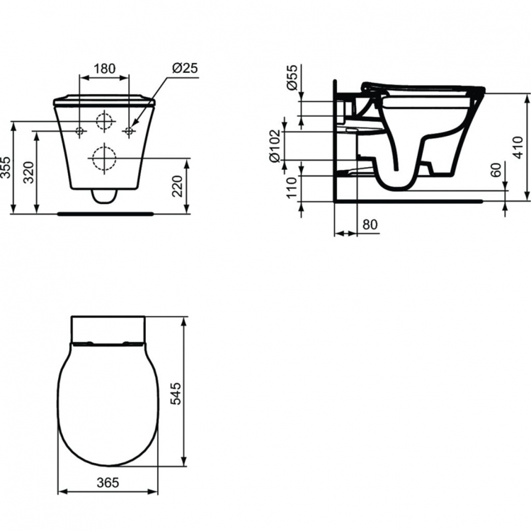 Пневматический промо-набор 4 в 1 Ideal Standard с унитазом K819501 CONNECT AIR Rimless, с сиденьем и крышкой E036801, с инсталляцией PROSYS 120 P и пневматической панелью смыва OLEAS™ P1