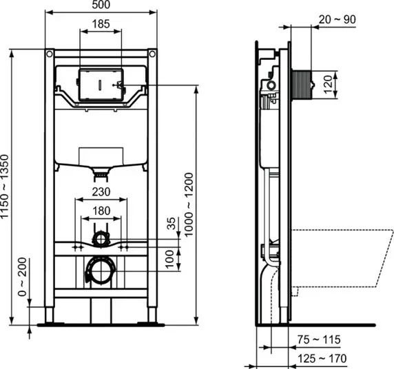 Промо-комплект 4 в 1 Ideal Standard с подвесным унитазом E005401 CONNECT AIR AquaBlade® с сиденьем и крышкой E036601 CONNECT AIR, встраиваемой инсталляцией R020467 PROSYS FRAME 120 M и механической панелью смыва R0108AA SOLEA M1