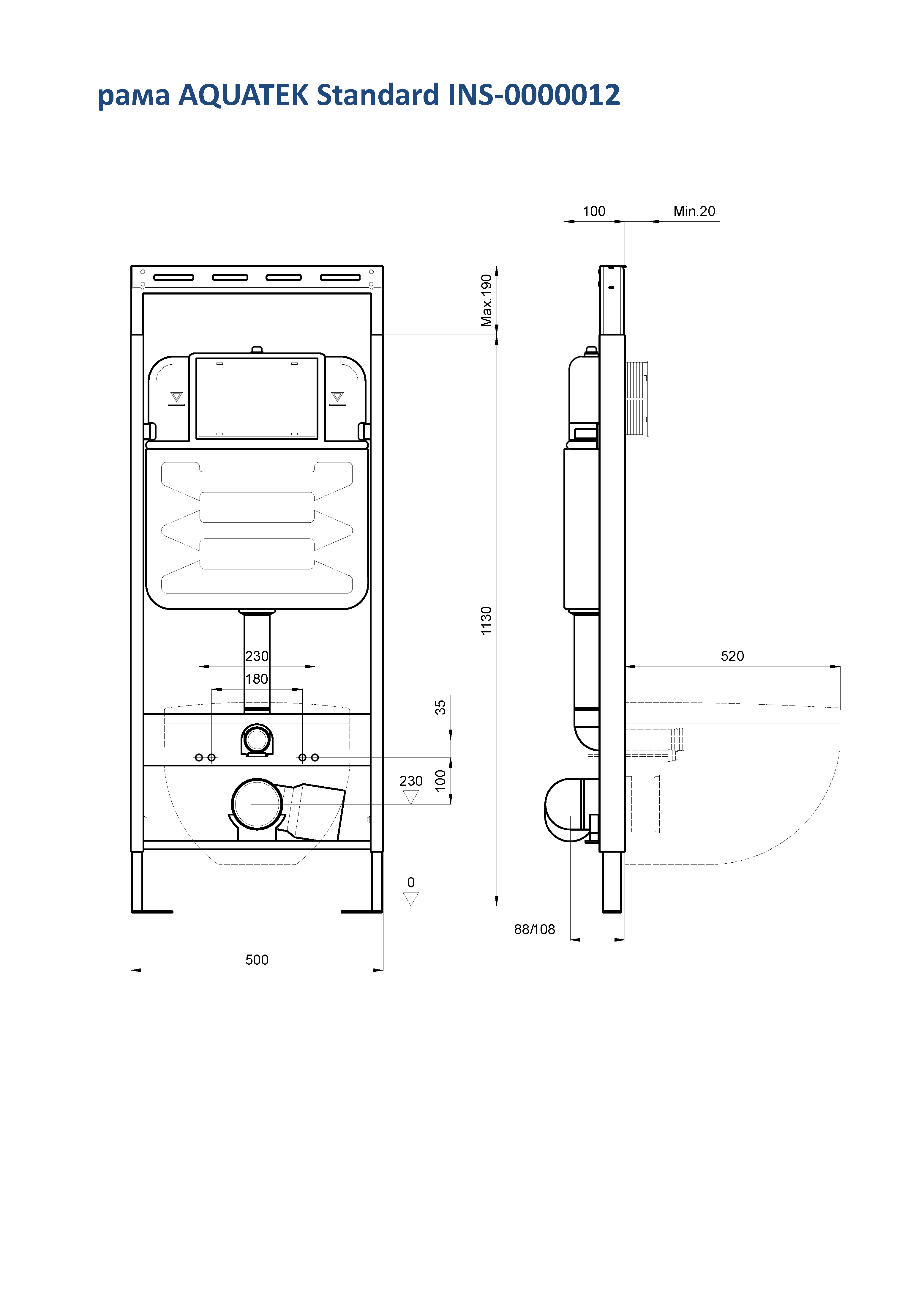 Set AQUATEK БЕТТА (рама AQUATEK Standard INS-0000012+звукоизоляционная прокладка+унитаз БЕТТА AQ1253W-00+тонкое сиденье с механизмом плавного закрывания)