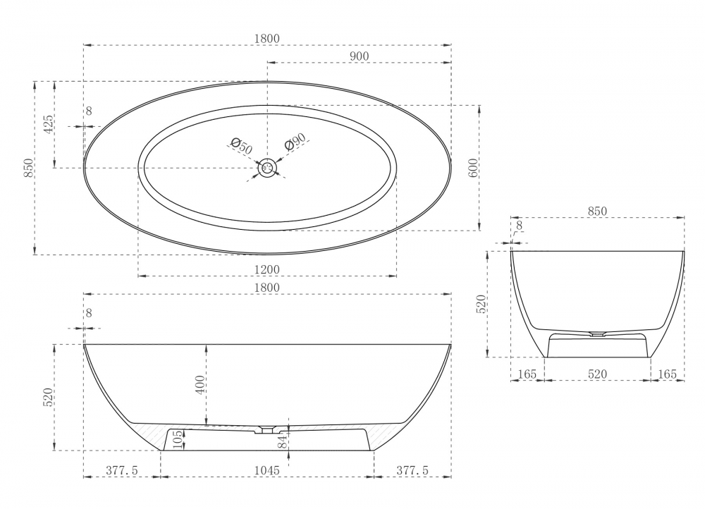 Ванна из искусственного камня ABBER Stein AS9625-1.8 белая матовая