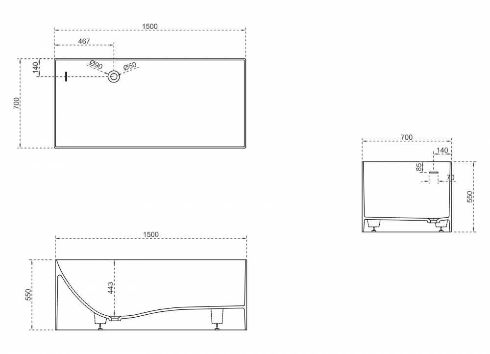 Ванна из искусственного камня ABBER Stein AS9640-1.5 белая матовая
