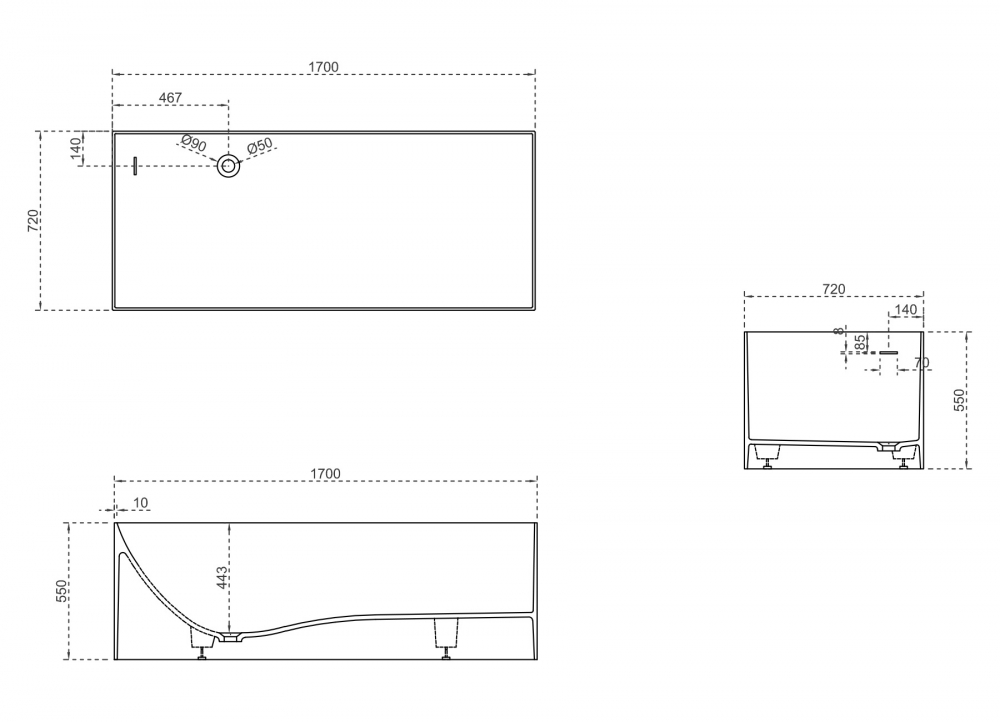 Ванна из искусственного камня ABBER Stein AS9640-1.7 белая матовая