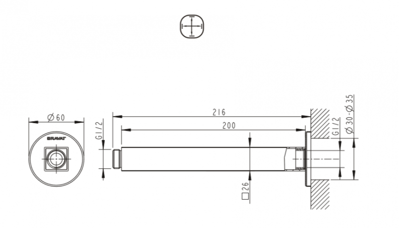 Кронштейн для верхнего душа Bravat Built-in P7436C-RUS Хром