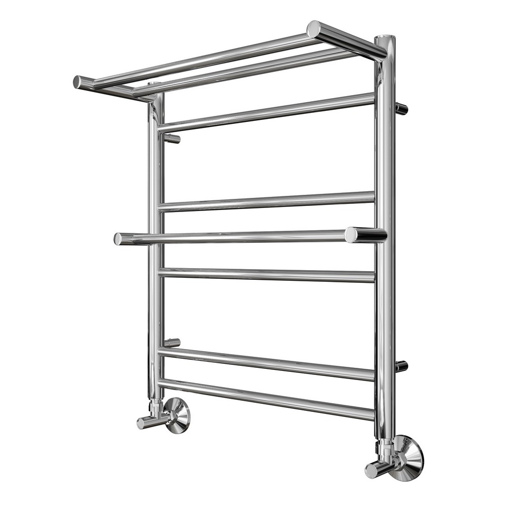 Полотенцесушитель водяной Aquatek Альфа AQ RRP0760CH 60х50 с полкой, хром - современная модель, сделанная из надежного материала - нержавеющей стали, которая осуществляет равномерный обогрев помещения. Отопительное оборудование имеет форму лесенку и габариты: ширина - 50 см, глубина - 7 см, высота - 60 см., что позволяет ему отлично разместиться в пространстве помещения. Межосевой интервал составляет 50 см, а диаметр подводки достигает дюйма. Подвесной монтаж и горизонтальное, нижнее направление подсоединения дают возможность быстро расположить полотенцесушитель и подключить его к системе центрального отопления, к системе горячего водоснабжения. Модель линейки Альфа превосходно справляется с неожиданными перепадами давления или температуры, а выверенная конструкция гарантирует продолжительный срок эксплуатации. Официальная гарантия на товар бренда Aquatek действует 10 лет. Модель считается лучшей в своем ценовом классе, производится в России и качественно выполняет свои задачи.