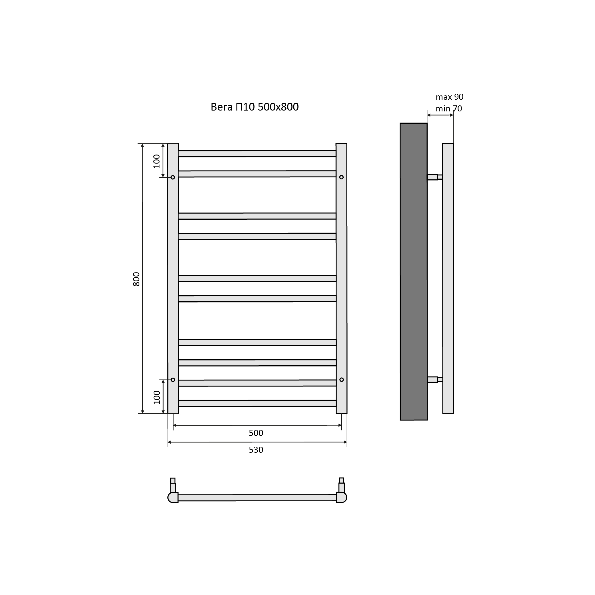 Полотенцесушитель водяной Aquatek Вега AQ DR1080BL 80х50 черный муар