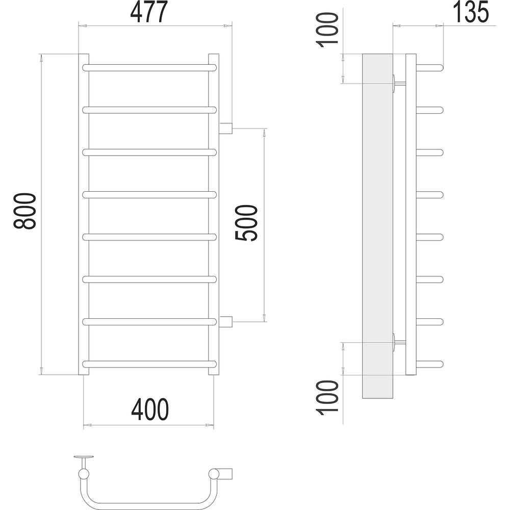 Полотенцесушитель водяной (боковое подключение) Terminus Стандарт П8 40х80 - популярная модель, изготовленная из надежного материала - нержавеющей стали, которая осуществляет равномерный обогрев помещения. Отопительное оборудование имеет форму лесенку и размеры: ширина - 47.7 см, глубина - 13.5 см, высота - 80 см., что позволяет ему идеально разместиться в пространстве помещения. Межосевой интервал равен 50 см, а диаметр подводки достигает дюйма. Подвесной монтаж и правое, левое направление подсоединения дают возможность без проблем разместить полотенцесушитель и подключить его к системе горячего водоснабжения. Модель линейки Стандарт замечательно справляется с резкими перепадами давления или температуры, а выверенная конструкция обеспечивает долговременный срок эксплуатации. Гарантия на товар бренда Terminus действует 10 лет. Модель считается лучшей в своем ценовом сегменте, изготавливается в России и качественно выполняет свои задачи.