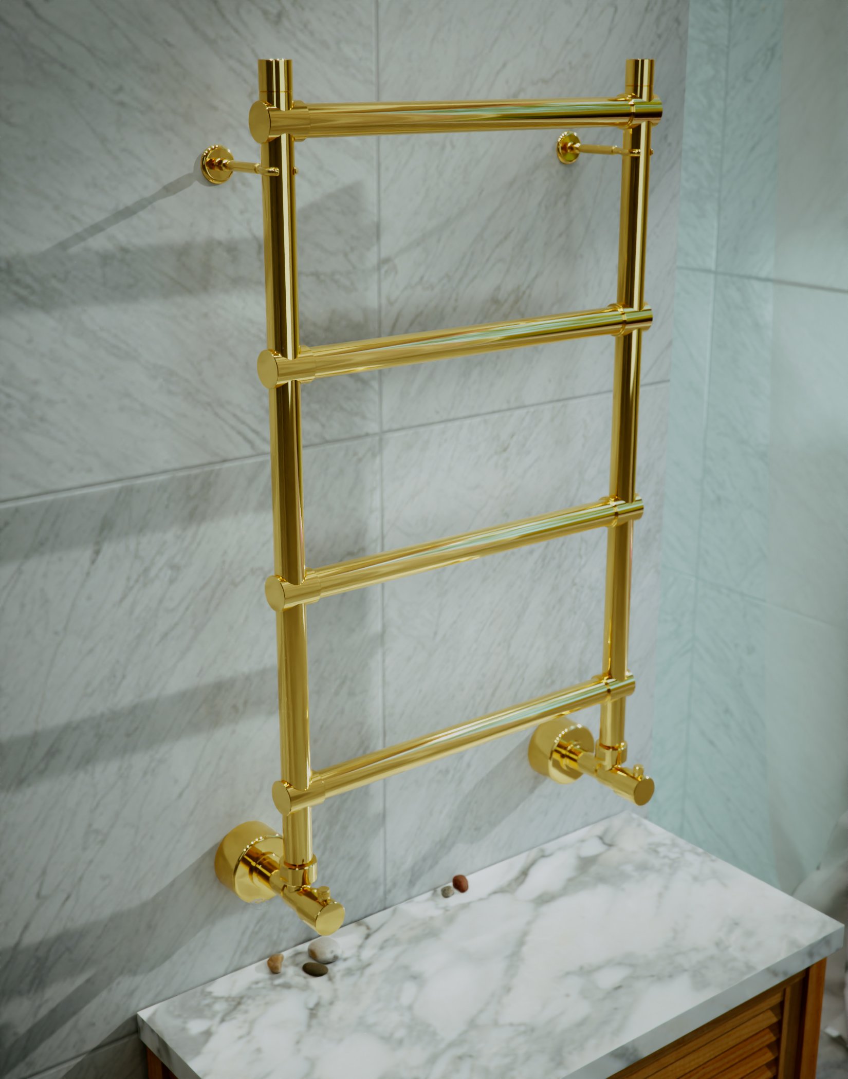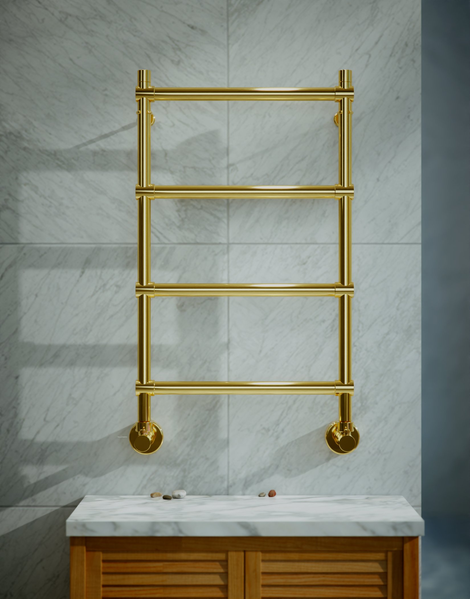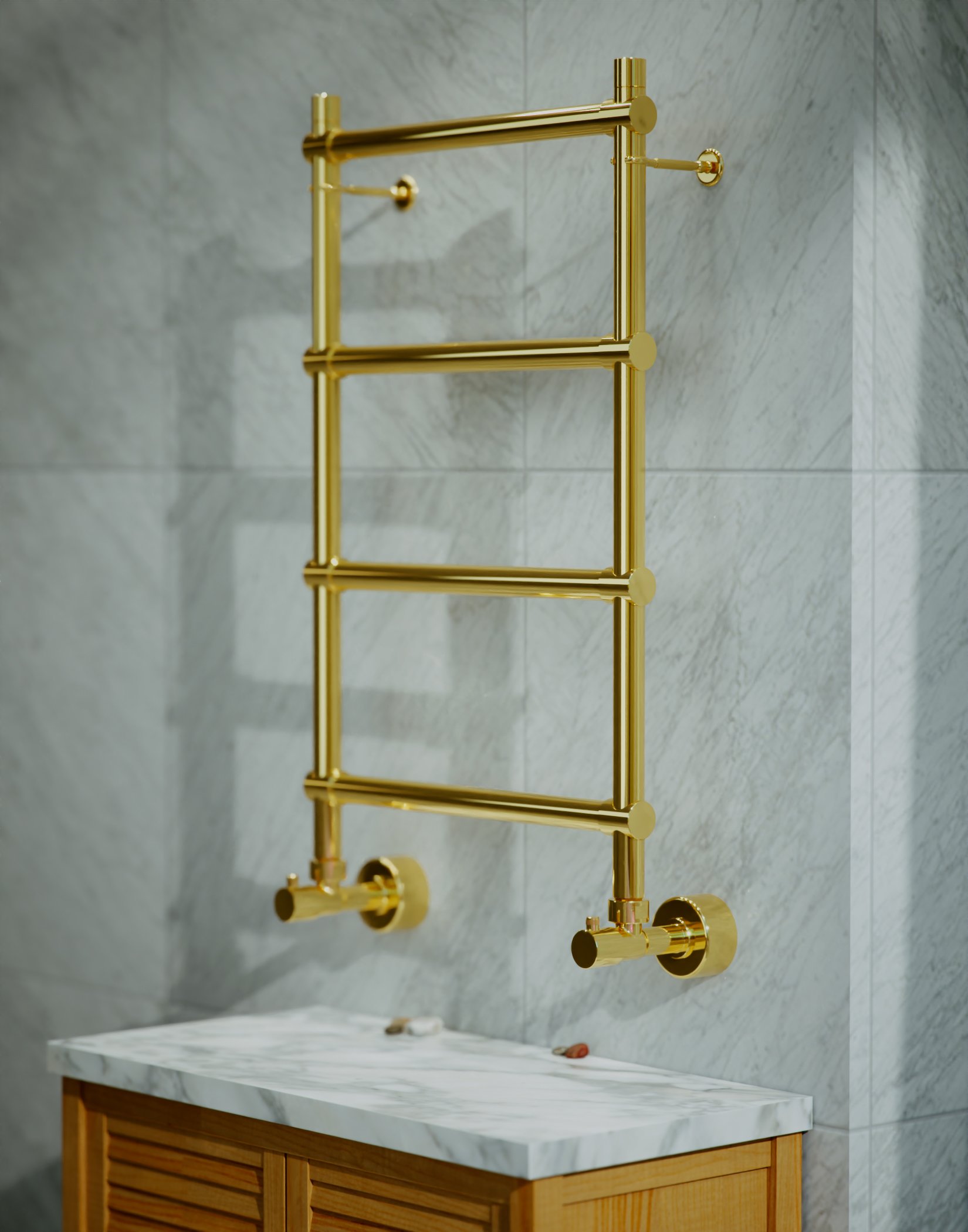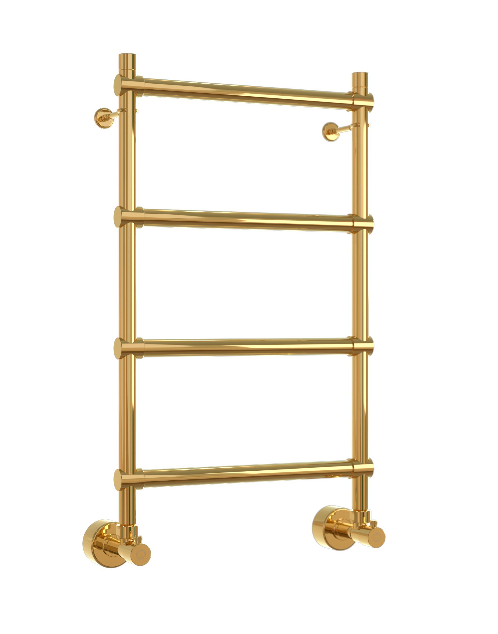 Полотенцесушитель водяной Margaroli Sole 442-4/S 4423704GON 720х435 золото - новая модель, сделанная из прочного материала - латуни, которая осуществляет равномерный обогрев помещения. Оборудование имеет форму лесенку и параметры: ширина - 43 см, глубина - 13.5 см, высота - 72 см., что дает возможность ему отлично вписаться в пространство душевой. Межосевой интервал равен 40 см, а диаметр подводки достигает 1/2 дюйма. Подвесной монтаж и горизонтальное или нижнее направление подключения дают возможность без проблем расположить полотенцесушитель и подключить его к системе центрального отопления или к системе горячего водоснабжения. Модель линейки Sole замечательно справляется с внезапными изменениями давления или температуры, а специальная конструкция обеспечивает длительный срок использования. Гарантия на товар бренда Margaroli составляет 5 лет. Сушилка для полотенец является лучшей в своей ценовой категории, производится в Италии и отлично выполняет свои задачи.