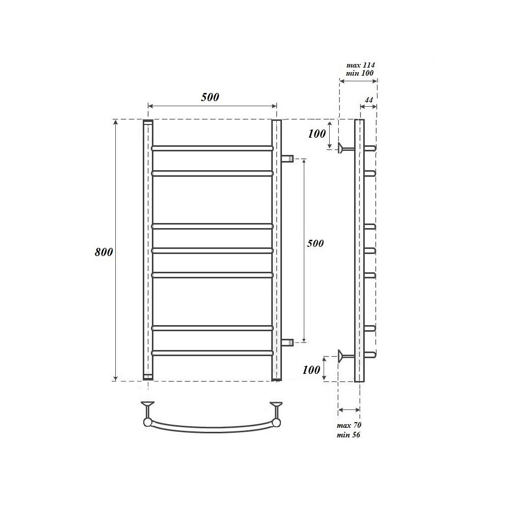 Полотенцесушитель водяной Point PN05558 П7 500x800 с боковым подключением 500, хром