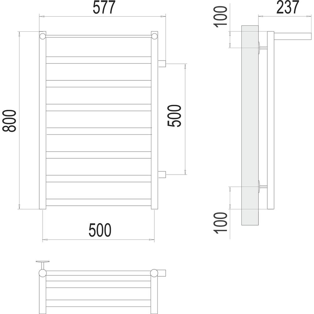 Полотенцесушитель водяной с полкой (боковое подключение) Terminus Хендрикс П8 50х80