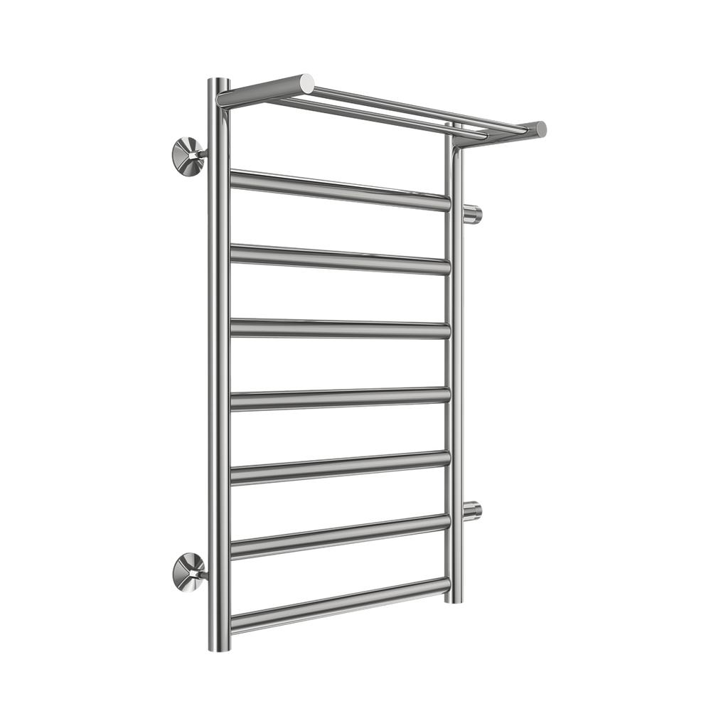 Полотенцесушитель водяной с полкой (боковое подключение) Terminus Хендрикс П8 50х80 - популярная модель, выполненная из прочного материала - нержавеющей стали, которая осуществляет равномерный обогрев помещения. Отопительное оборудование имеет форму лесенку и габариты: ширина - 57.7 см, глубина - 23.7 см, высота - 80 см., что разрешает ему отлично расположиться в пространстве душевой. Межосевой промежуток составляет 50 см, а диаметр подводки достигает дюйма. Подвесной санмонтаж и правое направление подсоединения дают возможность с легкостью разместить полотенцесушитель и подключить его к системе горячего водоснабжения. Модель линейки Хендрикс замечательно справляется с неожиданными изменениями давления или температуры, а специальная конструкция обеспечивает долговременный срок эксплуатации. Официальная гарантия на товар бренда Terminus составляет 10 лет. Сушилка для полотенец заслужено называется лучшей в своем ценовом сегменте, изготавливается в России и отлично выполняет свои функции.