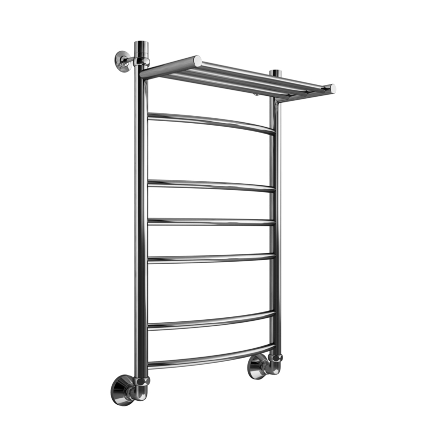 Полотенцесушитель водяной с полкой Маргроид Вид 5 80х50 хром - новая модель, выполненная из прочного материала - нержавеющей стали, которая эффективно выполняет обогрев помещения. Отопительное оборудование имеет форму лесенку и параметры: ширина - 50 см, глубина - 25.7 см, высота - 80 см., что дает возможность ему прекрасно вписаться в пространство комнаты. Межосевой промежуток составляет 50 см, а диаметр подводки достигает 3/4 дюйма. Подвесной санмонтаж и горизонтальное, вертикальное, диагональное, боковое, нижнее направление подключения дают возможность без заминок расположить полотенцесушитель и подключить его к системе центрального отопления, к системе горячего водоснабжения. Модель линейки Вид 5 замечательно справляется с внезапными перепадами давления или температуры, а продуманная конструкция обеспечивает длительный срок эксплуатации. Гарантия на товар бренда Маргроид действует 10 лет. Сушилка для полотенец заслужено называется лучшей в своем ценовом сегменте, изготавливается в России и отлично выполняет свои функции.