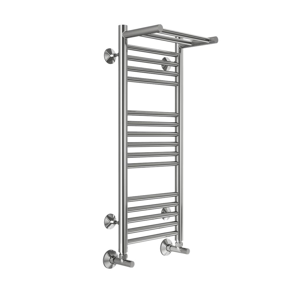 Полотенцесушитель водяной с полкой Terminus Аврора П16 30х80 - популярная модель, изготовленная из ударопрочного материала - нержавеющей стали, которая осуществляет равномерный обогрев помещения. Оборудование имеет форму лесенку и параметры: ширина - 33.2 см, глубина - 23.7 см, высота - 80 см., что разрешает ему идеально разместиться в пространстве комнаты. Межосевой интервал равен 30 см, а диаметр подводки достигает дюйма. Подвесной санмонтаж и горизонтальное, нижнее направление присоединения дают возможность без заминок разместить полотенцесушитель и подключить его к системе горячего водоснабжения. Модель линейки Аврора превосходно справляется с внезапными изменениями давления или температуры, а выверенная конструкция гарантирует продолжительный период использования. Гарантийное обслуживание на товар бренда Terminus составляет 10 лет. Сушилка для полотенец считается лучшей в своем ценовом сегменте, изготавливается в России и отлично выполняет свои задачи.