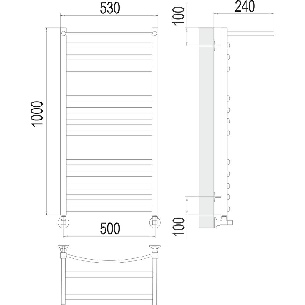 Полотенцесушитель водяной с полкой Terminus Енисей П13 50х100 - известная модель, изготовленная из прочного материала - нержавеющей стали, которая осуществляет равномерный обогрев помещения. Оборудование имеет форму лесенку и габариты: ширина - 53 см, глубина - 24 см, высота - 100 см., что разрешает ему идеально вписаться в пространство душевой. Межосевой промежуток составляет 50 см, а диаметр подводки достигает дюйма. Подвесной санмонтаж и горизонтальное, нижнее направление подключения дают возможность легко установить полотенцесушитель и подключить его к системе горячего водоснабжения. Модель линейки Енисей великолепно справляется с неожиданными перепадами давления или температуры, а выверенная конструкция гарантирует долговременный период использования. Гарантийное обслуживание на товар бренда Terminus составляет 10 лет. Модель является лучшей в своей ценовой категории, производится в России и безотказно выполняет свои задачи.