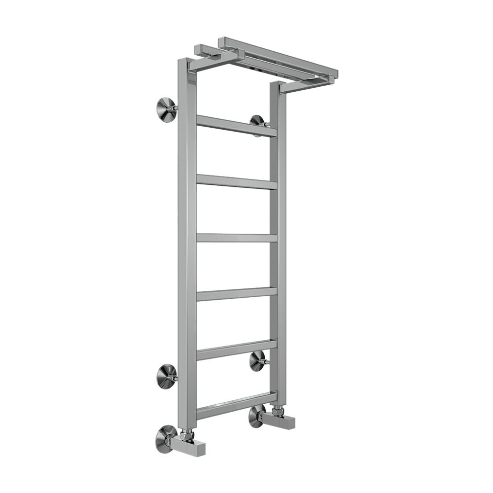 Полотенцесушитель водяной с полкой Terminus Контур П7 30х80 - популярная модель, сделанная из прочного материала - нержавеющей стали, которая эффективно выполняет обогрев помещения. Оборудование имеет форму лесенку и параметры: ширина - 37.4 см, глубина - 22 см, высота - 80 см., что разрешает ему идеально вписаться в пространство помещения. Межосевой интервал равен 30 см, а диаметр подводки достигает дюйма. Подвесной санмонтаж и горизонтальное, нижнее направление присоединения дают возможность с легкостью разместить полотенцесушитель и подключить его к системе горячего водоснабжения. Модель линейки Контур великолепно справляется с резкими перепадами давления или температуры, а выверенная конструкция обеспечивает долговременный период использования. Официальная гарантия на товар бренда Terminus составляет 10 лет. Сушилка для полотенец является лучшей в своей ценовой категории, изготавливается в России и качественно выполняет свои задачи.