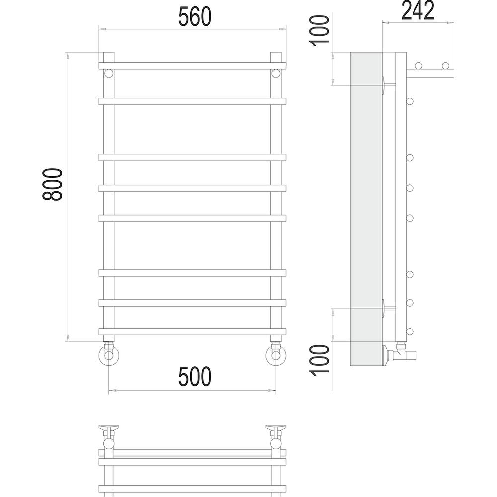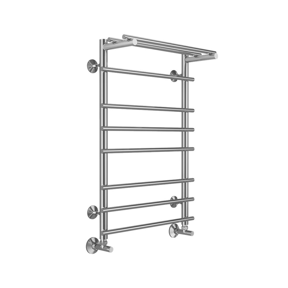 Полотенцесушитель водяной с полкой Terminus Ватра П8 50х80 - известная модель, сделанная из ударопрочного материала - нержавеющей стали, которая осуществляет равномерный обогрев пространства. Отопительное оборудование имеет форму лесенку и параметры: ширина - 56 см, глубина - 24.2 см, высота - 80 см., что дает возможность ему идеально расположиться в пространстве душевой. Межосевой промежуток равен 50 см, а диаметр подводки достигает дюйма. Подвесной санмонтаж и горизонтальное, нижнее направление подключения дают возможность без проблем установить полотенцесушитель и подключить его к системе горячего водоснабжения. Модель линейки Ватра великолепно справляется с неожиданными перепадами давления или температуры, а продуманная конструкция обеспечивает длительный период использования. Гарантия на товар бренда Terminus составляет 10 лет. Модель является лучшей в своей ценовой категории, производится в России и качественно выполняет свои функции.