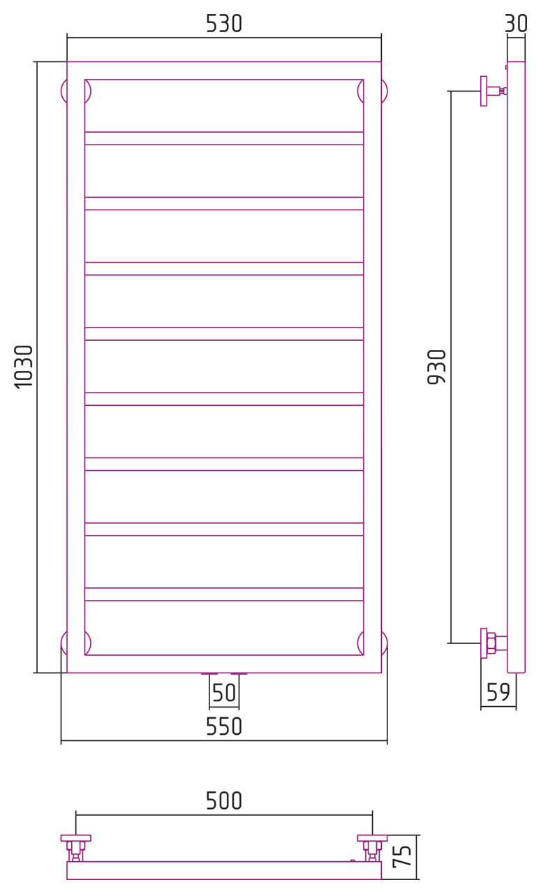 Полотенцесушитель водяной Сунержа Канцлер 100х50 черный матовый - известная модель, изготовленная из надежного материала - нержавеющей стали, которая осуществляет равномерный обогрев помещения. Оборудование имеет форму лесенку и параметры: ширина - 55 см, глубина - 7.5 см, высота - 103 см., что разрешает ему как нельзя лучше расположиться в пространстве душевой. Межосевой интервал составляет 50 см, а диаметр подводки достигает 3/4 дюйма. Подвесной монтаж и горизонтальное или нижнее направление подсоединения дают возможность быстро установить полотенцесушитель и подключить его к системе горячего водоснабжения или к системе центрального отопления. Модель линейки Канцлер великолепно справляется с перепадами давления или температуры, а специальная конструкция обеспечивает продолжительный срок эксплуатации. Гарантия на товар бренда Сунержа составляет 7 лет. Сушилка для полотенец считается лучшей в своем ценовом сегменте, производится в России и безотказно выполняет свои задачи.