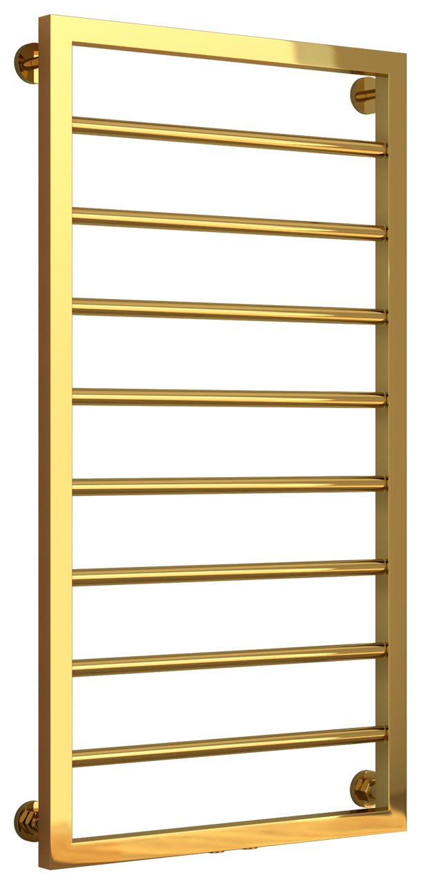 Полотенцесушитель водяной Сунержа Канцлер 100х50 золото - известная модель, сделанная из надежного материала - нержавеющей стали, которая осуществляет равномерный обогрев пространства. Отопительное оборудование имеет форму лесенку и параметры: ширина - 55 см, глубина - 7.5 см, высота - 103 см., что позволяет ему идеально расположиться в пространстве комнаты. Межосевой интервал равен 50 см, а диаметр подводки достигает 3/4 дюйма. Подвесной санмонтаж и горизонтальное или нижнее направление присоединения дают возможность с легкостью расположить полотенцесушитель и подключить его к системе горячего водоснабжения или к системе центрального отопления. Модель линейки Канцлер замечательно справляется с внезапными перепадами давления или температуры, а продуманная конструкция обеспечивает длительный период использования. Официальная гарантия на товар бренда Сунержа действует 7 лет. Сушилка для полотенец считается лучшей в своем ценовом классе, производится в России и отлично выполняет свои задачи.