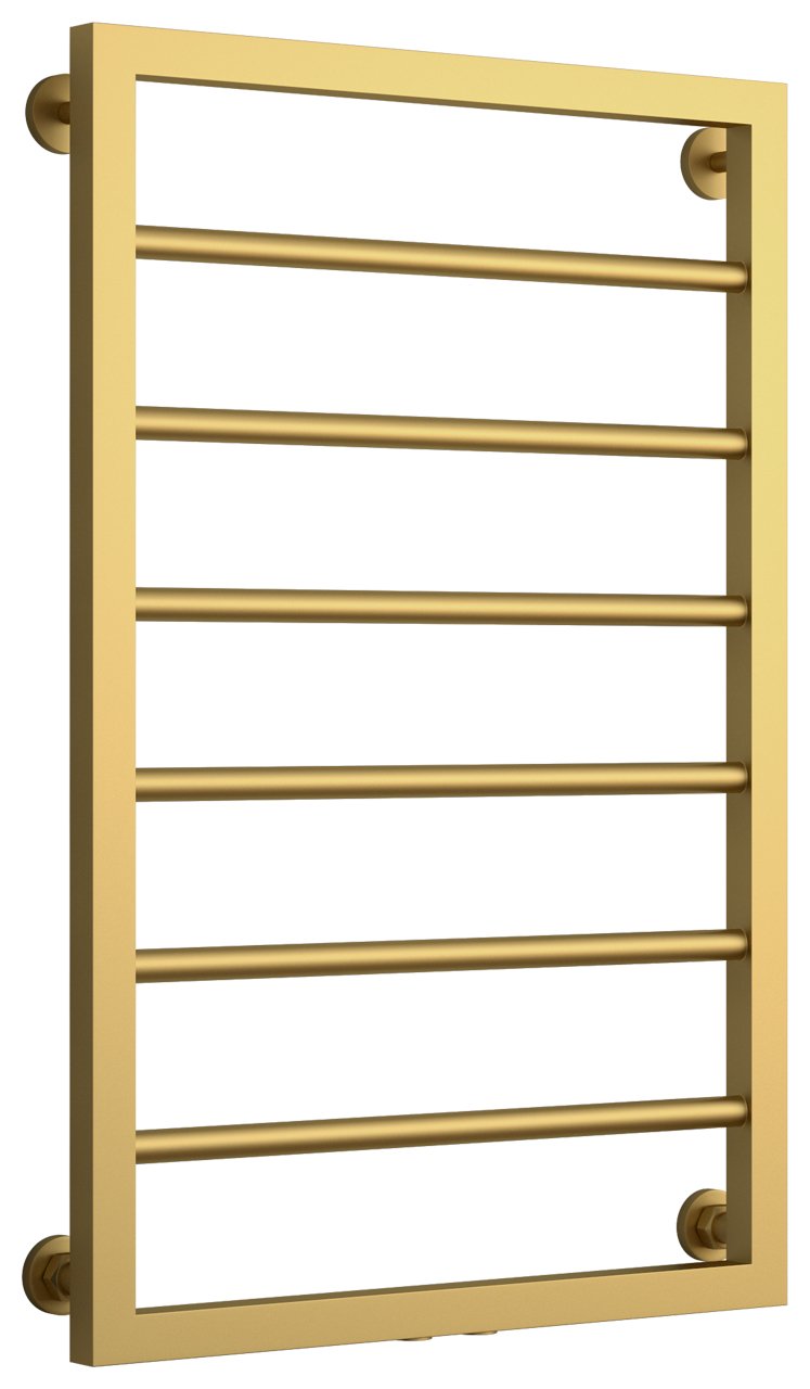 Полотенцесушитель водяной Сунержа Канцлер 80х50 золото матовое - популярная модель, выполненная из прочного материала - нержавеющей стали, которая осуществляет равномерный обогрев помещения. Оборудование имеет форму лесенку и параметры: ширина - 55 см, глубина - 7.5 см, высота - 83 см., что дает возможность ему идеально разместиться в пространстве помещения. Межосевой промежуток составляет 50 см, а диаметр подводки достигает 3/4 дюйма. Подвесной санмонтаж и горизонтальное или нижнее направление подключения дают возможность легко разместить полотенцесушитель и подключить его к системе горячего водоснабжения или к системе центрального отопления. Модель линейки Канцлер замечательно справляется с резкими перепадами давления или температуры, а специальная конструкция гарантирует длительный срок эксплуатации. Официальная гарантия на товар бренда Сунержа составляет 7 лет. Модель считается лучшей в своем ценовом сегменте, производится в России и безотказно выполняет свои задачи.