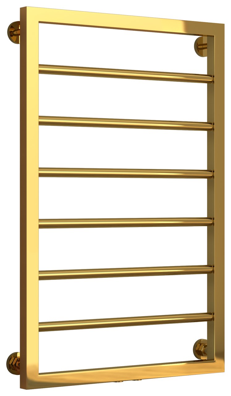 Полотенцесушитель водяной Сунержа Канцлер 80х50 золото - популярная модель, выполненная из ударопрочного материала - нержавеющей стали, которая эффективно выполняет обогрев пространства. Оборудование имеет форму лесенку и размеры: ширина - 55 см, глубина - 7.5 см, высота - 83 см., что дает возможность ему отлично разместиться в пространстве помещения. Межосевой интервал равен 50 см, а диаметр подводки достигает 3/4 дюйма. Подвесной монтаж и горизонтальное или нижнее направление подключения дают возможность без заминок установить полотенцесушитель и подключить его к системе горячего водоснабжения или к системе центрального отопления. Модель линейки Канцлер замечательно справляется с внезапными перепадами давления или температуры, а специальная конструкция обеспечивает длительный срок эксплуатации. Официальная гарантия на товар бренда Сунержа составляет 7 лет. Модель заслужено называется лучшей в своей ценовой категории, производится в России и отлично выполняет свои функции.