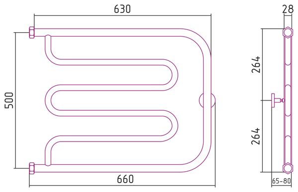 Полотенцесушитель водяной Сунержа Лира 50х65 золото - современная модель, изготовленная из ударопрочного материала - нержавеющей стали, которая осуществляет равномерный обогрев пространства. Оборудование имеет форму U-образную и размеры: ширина - 66 см, глубина - 10.5 см, высота - 53.6 см., что позволяет ему прекрасно расположиться в пространстве помещения. Межосевой промежуток составляет 50 см, а диаметр подводки достигает 1 дюйма. Подвесной санмонтаж и вертикальное или боковое направление подключения дают возможность в два счета расположить полотенцесушитель и подключить его к системе горячего водоснабжения или к системе центрального отопления. Модель линейки Лира замечательно справляется с перепадами давления или температуры, а выверенная конструкция обеспечивает продолжительный срок использования. Официальная гарантия на товар бренда Сунержа составляет 7 лет. Модель считается лучшей в своем ценовом классе, производится в России и качественно выполняет свои функции.
