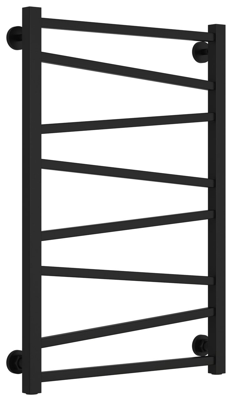 Полотенцесушитель водяной Сунержа Сирокко 80х50 черный матовый - функциональная модель, изготовленная из надежного материала - нержавеющей стали, которая предусматривает обогрев всего пространства. Оборудование имеет форму лесенку и размеры: ширина - 55 см, глубина - 7.5 см, высота - 80 см., что дает возможность ему идеально расположиться в пространстве помещения. Межосевой промежуток составляет 50 см, а диаметр подводки достигает 3/4 дюйма. Подвесной монтаж и горизонтальное или нижнее направление присоединения дают возможность с легкостью разместить полотенцесушитель и подключить его к системе горячего водоснабжения или к системе центрального отопления. Модель линейки Сирокко великолепно справляется с резкими перепадами давления или температуры, а продуманная конструкция обеспечивает длительный срок эксплуатации. Официальная гарантия на товар бренда Сунержа составляет 7 лет. Сушилка для полотенец заслужено называется лучшей в своем ценовом сегменте, изготавливается в России и отлично выполняет свои функции.