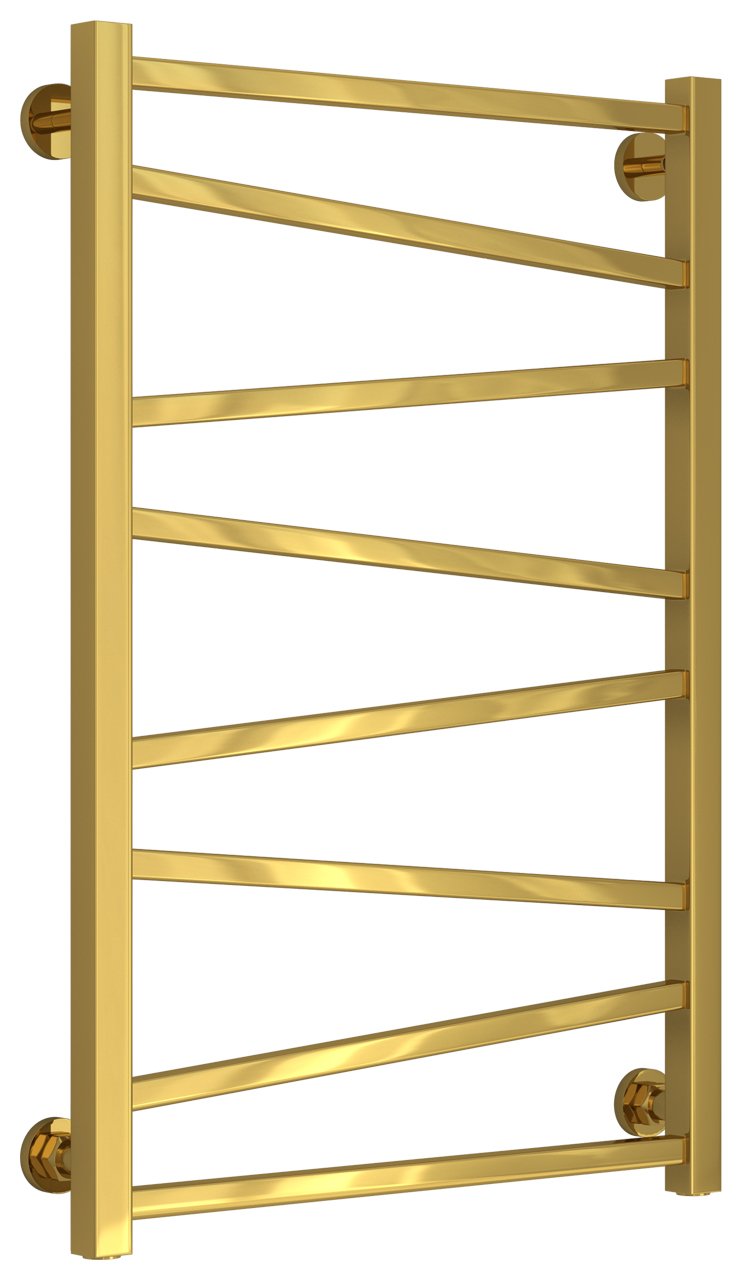Полотенцесушитель водяной Сунержа Сирокко 80х50 золото - функциональная модель, изготовленная из ударопрочного материала - нержавеющей стали, которая предусматривает обогрев всего помещения. Оборудование имеет форму лесенку и размеры: ширина - 55 см, глубина - 7.5 см, высота - 80 см., что разрешает ему как нельзя лучше вписаться в пространство комнаты. Межосевой промежуток равен 50 см, а диаметр подводки достигает 3/4 дюйма. Подвесной монтаж и горизонтальное или нижнее направление подсоединения дают возможность быстро расположить полотенцесушитель и подключить его к системе горячего водоснабжения или к системе центрального отопления. Модель линейки Сирокко замечательно справляется с внезапными изменениями давления или температуры, а продуманная конструкция гарантирует долгий период эксплуатации. Гарантия на товар бренда Сунержа действует 7 лет. Модель считается лучшей в своем ценовом классе, изготавливается в России и отлично выполняет свои задачи.