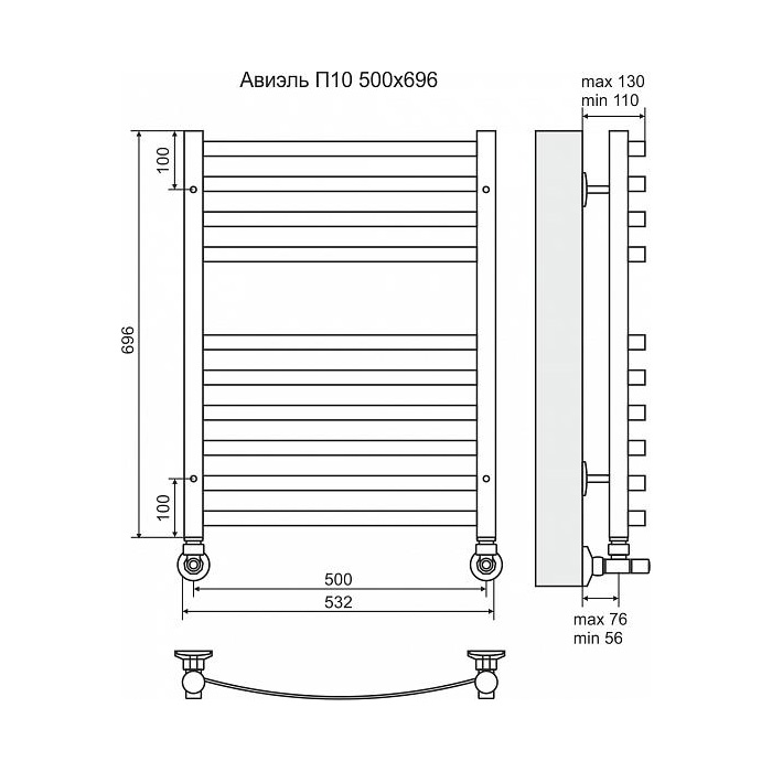 Полотенцесушитель водяной Terminus Авиэль П10 500x696