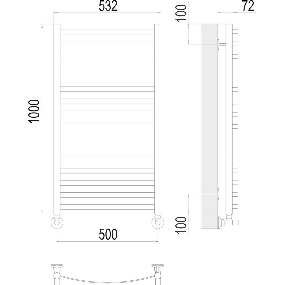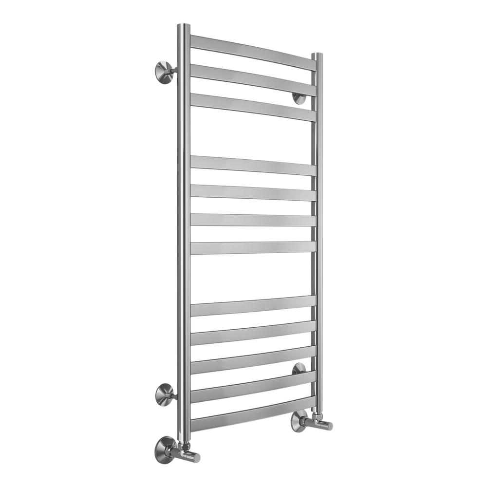 Полотенцесушитель водяной Terminus Авиэль П12 50х100 - функциональная модель, сделанная из прочного материала - нержавеющей стали, которая предусматривает обогрев всего помещения. Отопительное оборудование имеет форму лесенку и габариты: ширина - 53.2 см, глубина - 7.2 см, высота - 100 см., что разрешает ему идеально расположиться в пространстве душевой. Межосевой интервал составляет 50 см, а диаметр подводки достигает дюйма. Подвесной монтаж и горизонтальное, нижнее направление подключения дают возможность быстро расположить полотенцесушитель и подключить его к системе горячего водоснабжения. Модель линейки Авиэль великолепно справляется с внезапными перепадами давления или температуры, а продуманная конструкция обеспечивает продолжительный период эксплуатации. Гарантийное обслуживание на товар бренда Terminus составляет 10 лет. Сушилка для полотенец заслужено называется лучшей в своем ценовом классе, изготавливается в России и качественно выполняет свои функции.