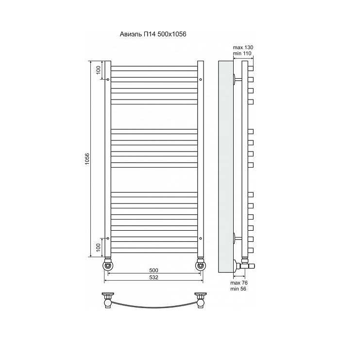 Полотенцесушитель водяной Terminus Авиэль П14 500x1056