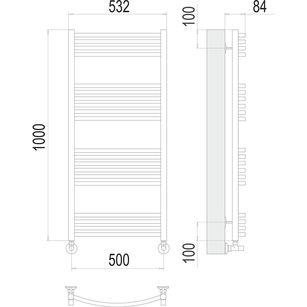 Полотенцесушитель водяной Terminus Классик П20 50х100 - популярная модель, сделанная из надежного материала - нержавеющей стали, которая предусматривает обогрев всего помещения. Отопительное оборудование имеет форму лесенку и размеры: ширина - 53.2 см, глубина - 8.4 см, высота - 100 см., что дает возможность ему как нельзя лучше разместиться в пространстве душевой. Межосевой интервал составляет 50 см, а диаметр подводки достигает дюйма. Подвесной санмонтаж и горизонтальное, нижнее направление подключения дают возможность в два счета разместить полотенцесушитель и подключить его к системе горячего водоснабжения. Модель линейки Классик превосходно справляется с внезапными перепадами давления или температуры, а специальная конструкция обеспечивает долговременный период использования. Гарантия на товар бренда Terminus действует 10 лет. Модель заслужено называется лучшей в своей ценовой категории, изготавливается в России и безотказно выполняет свои задачи.
