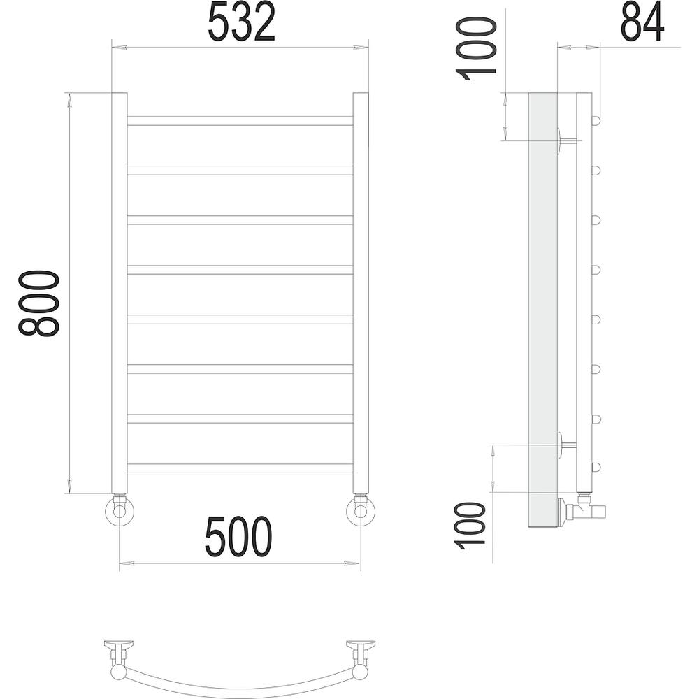 Полотенцесушитель водяной Terminus Классик П8 50х80 - функциональная модель, выполненная из ударопрочного материала - нержавеющей стали, которая предусматривает обогрев всего пространства. Отопительное оборудование имеет форму лесенку и параметры: ширина - 53.2 см, глубина - 8.4 см, высота - 80 см., что разрешает ему идеально вписаться в пространство помещения. Межосевой интервал равен 50 см, а диаметр подводки достигает дюйма. Подвесной санмонтаж и горизонтальное, нижнее направление подключения дают возможность без проблем установить полотенцесушитель и подключить его к системе горячего водоснабжения. Модель линейки Классик замечательно справляется с перепадами давления или температуры, а продуманная конструкция гарантирует длительный срок эксплуатации. Гарантия на товар бренда Terminus составляет 10 лет. Модель считается лучшей в своем ценовом классе, производится в России и безотказно выполняет свои функции.