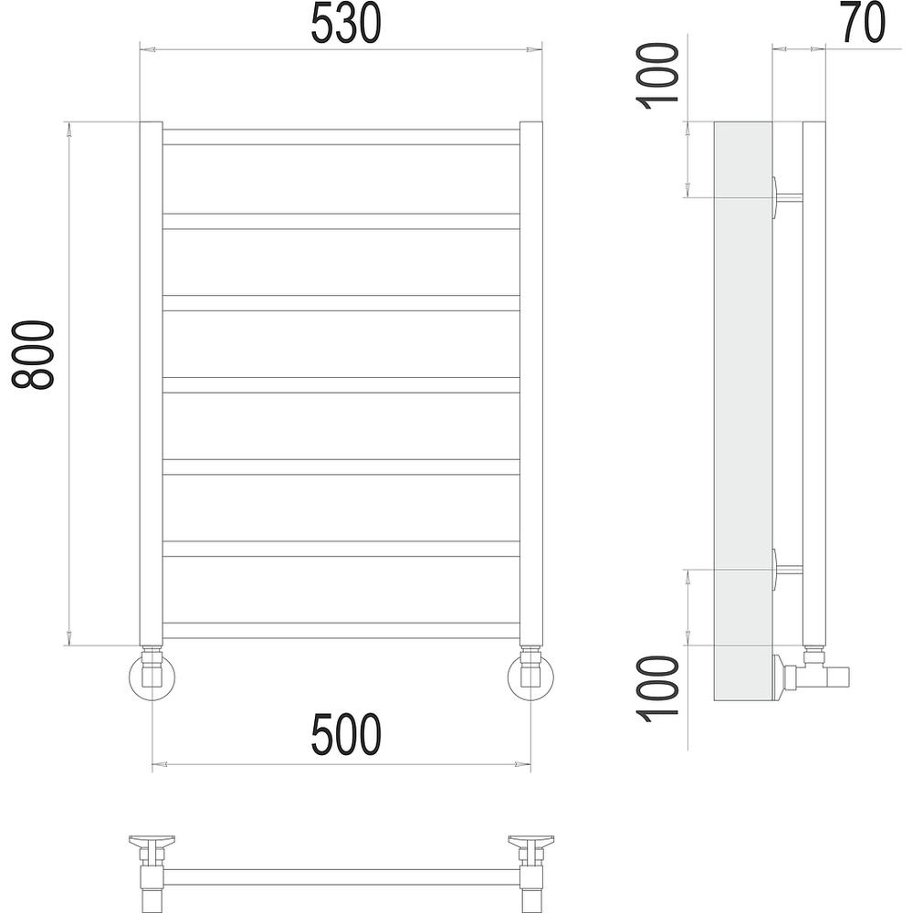 Полотенцесушитель водяной Terminus Контур П7 50х80 - популярная модель, сделанная из прочного материала - нержавеющей стали, которая осуществляет равномерный обогрев пространства. Отопительное оборудование имеет форму лесенку и габариты: ширина - 53 см, глубина - 7 см, высота - 80 см., что дает возможность ему прекрасно вписаться в пространство душевой. Межосевой промежуток равен 50 см, а диаметр подводки достигает дюйма. Подвесной монтаж и горизонтальное, нижнее направление подключения дают возможность с легкостью установить полотенцесушитель и подключить его к системе горячего водоснабжения. Модель линейки Контур замечательно справляется с резкими перепадами давления или температуры, а специальная конструкция обеспечивает долговременный период использования. Гарантия на товар бренда Terminus действует 10 лет. Модель заслужено называется лучшей в своем ценовом сегменте, изготавливается в России и отлично выполняет свои задачи.