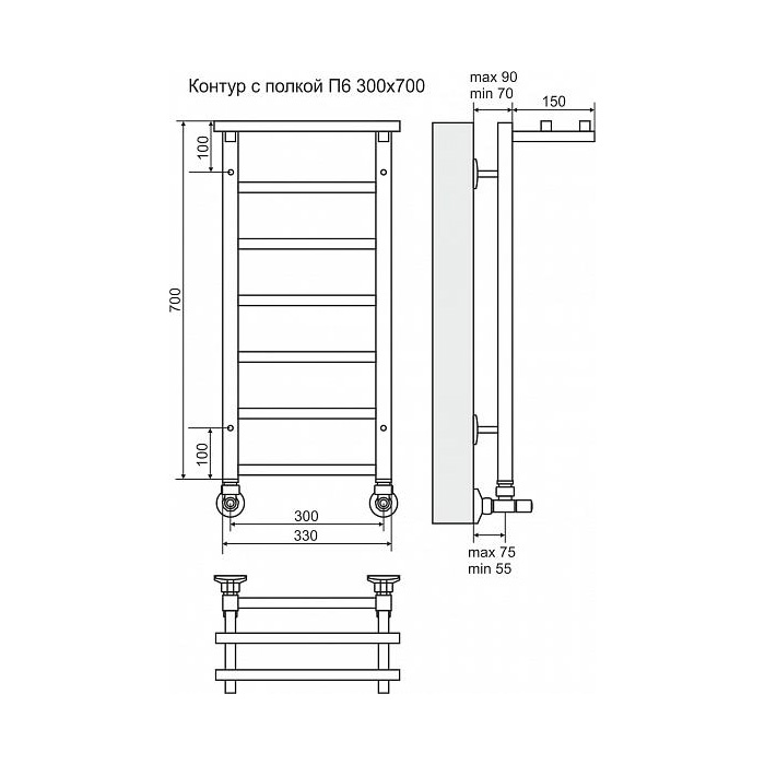 Полотенцесушитель водяной Terminus Контур с полкой П6 300x700